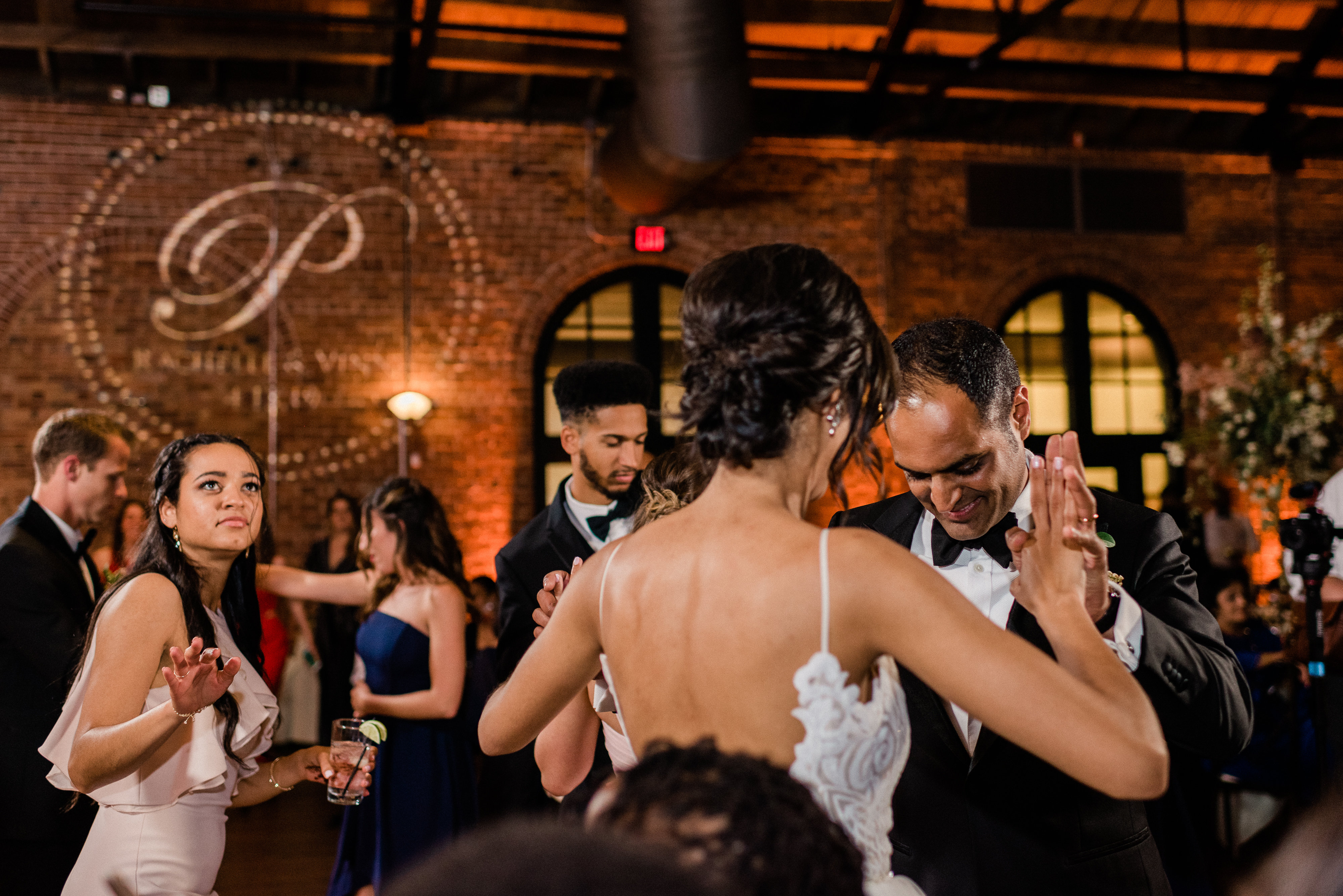 From the start of cocktail hour you honestly could feel the excitement. You could tell that this crowd really came to celebrate with these two and the lines at both bars were packed and guests were evening dancing to Cocktail music. Once the reception started, with introductions, it was on from that point! The environment really was electric and the dance-floor stayed packed the entire night, even halfway thru dinner guests were on the dance-floor as we moved from Motown, to Hindu, to Hip Hop to some Southern Rock Classics!